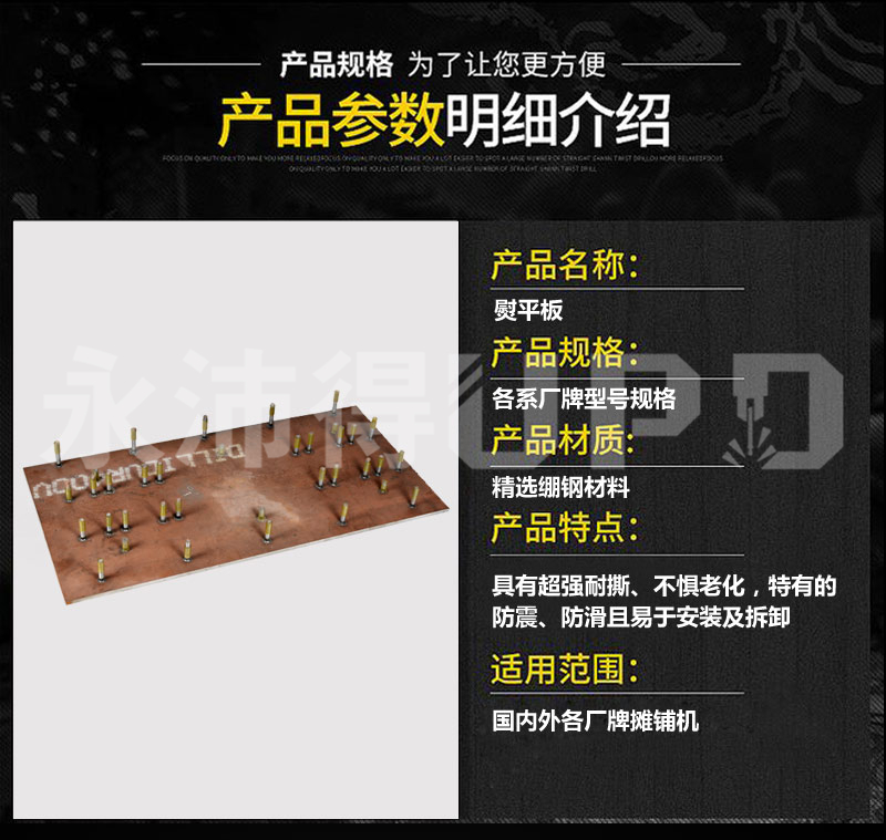 永沛得自主生产熨平板适用于福格勒、沃尔沃、宝马格、戴纳派克、三一、徐工、中联、华通、柳工、陕建摊铺机