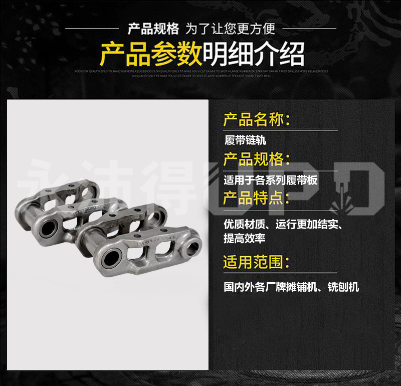 永沛得自主研发生产链轨与徐工、三一、柳工、宏大、柳工、等厂家国内外各系列摊铺机、铣刨机配套