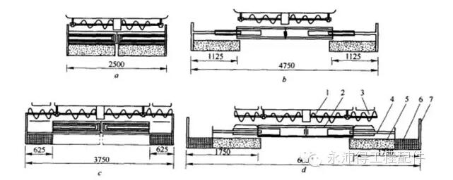 a.标砖宽度 b.伸缩式平板全部伸出的宽度 c.加宽熨平板未伸出时的宽度 d.加宽熨平板全部伸出时的宽度