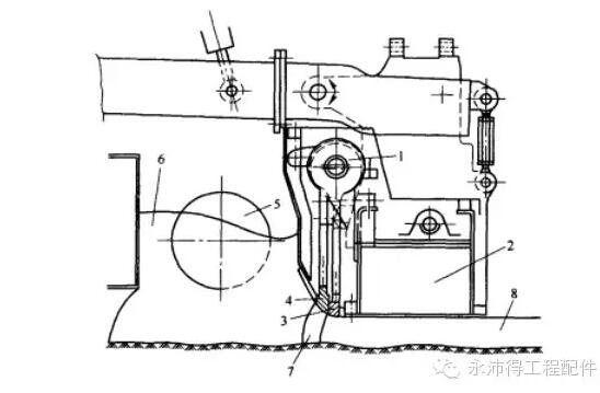 1.主熨平板 2.伸缩式熨平板 3.导板 4.螺旋摊铺器 5.熨平板侧壁