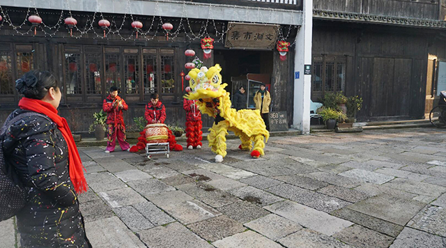 随阵阵锣鼓,一头栩栩如生的狮子神气十足地出现在人们面前。它眨巴着一双大眼睛,摇头摆尾,